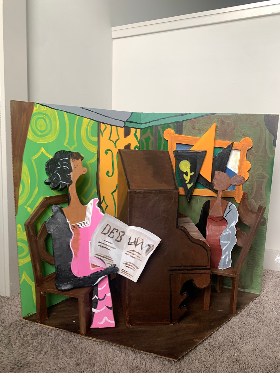 3D rendering (left) of original George Braque 's Le Duo using only cardboard, glue and paint